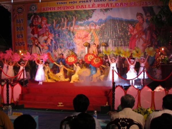 Ngoài những bài hát ca ngợi Đức Phật do giọng ca ngọt ngào, truyền cảm của thầy Đức Chiếu và nhóm múa An Hồng biểu diễn như: Mừng Đấng thế tôn; Sự tích Đức Phật; Mừng Phật ra đời; Phật pháp nhiệm màu … còn có sự góp mặt của các ca sỹ, nghệ sỹ nổi tiếng đến từ T.P HCM như: Hồng Tơ, Phượng Hằng… đã thu hút được sự nhiệt liệt hoan nghênh của các tăng ni, phật tử.
