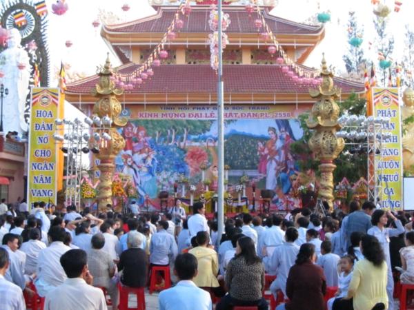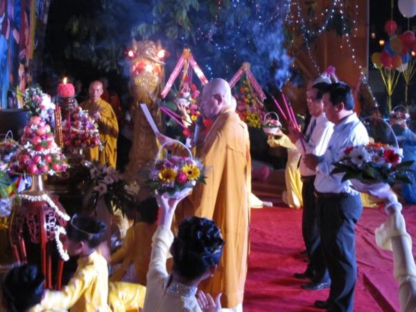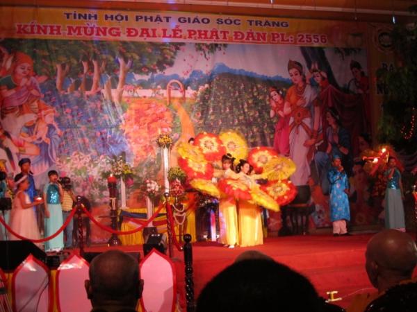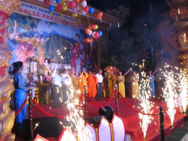 Sau lễ đặt vòng hoa viếng Nghĩa trang Liệt sĩ tỉnh, Ban tổ chức đã cử hành Đại lễ, với các nghi thức: H.T Dương Nhơn, Tuyên đọc Thông điệp Phật đản; Đại diện lãnh đạo tỉnh Sóc Trăng đọc thư chúc mừng Đại lễ Phật đản; sau 3 hồi chuông trống Bát Nhã, Hòa thượng Thích thiện Sanh niệm hương; nghi thức Nhập Từ bi quán và cuối cùng là nghi thức thả bồ câu, thả bong bóng.