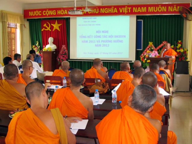 Ngoài ra, Hội còn phối hợp tốt với Ban Tuyên giáo Tỉnh ủy, Ban Tôn Giáo, Ban Dân tộc và Sở Tư pháp tỉnh tổ chức lớp học tập quán triệt Văn kiện Đại hội Đại biểu Toàn quốc lần thứ XI của Đảng cho hơn 100 vị là Hòa thượng, thượng tọa, Achar; tổ chức 2 cuộc tuyên truyền, phổ biến kiến thức pháp luật cho bà con Khmer tại 2 huyện Thạnh Trị và Châu Thành, có hơn 200 phật tử và 15 vị sư, Achar tham dự. Đầu năm nay, Hội còn cử 100 tăng sinh của Trường BTVH TC Pali Nam bộ(đặt tại Sóc Trăng) và các chư tăng tiêu biểu của các chùa tham dự lớp bồi dưỡng kiến thức Quốc phòng – An ninh do tỉnh tổ chức. Đồng thời, Hội còn cấp, phát miễn phí các tài liệu, nghị quyết, văn bản chính sách pháp luật của Đảng, Nhà nước, các loại ấn phẩm, sách báo …cho các chùa.