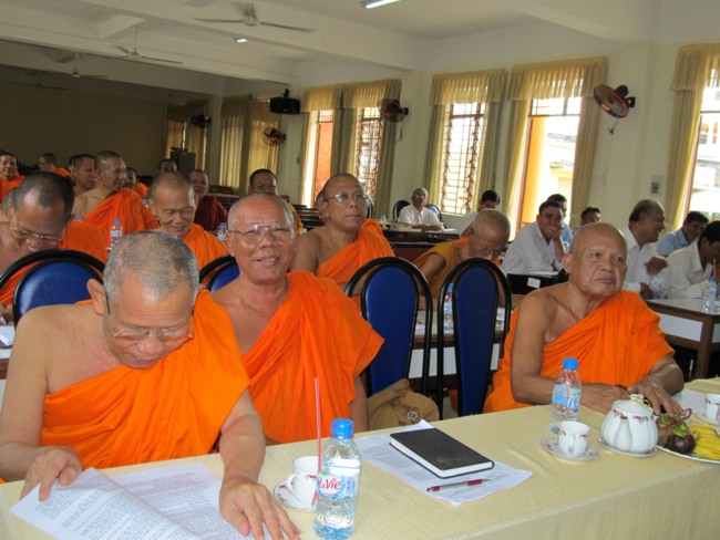 Trong không khí trang nghiêm, Hòa thượng Tăng Nô, Phó Hội Trưởng Hội ĐKSSYN tỉnh báo cáo tình hình hoạt động của Hội trong năm vừa qua, qua đó khẳng định vai trò trách nhiệm của Hội trong việc phối hợp với Ban Tôn giáo, Ban Dân tộc, UB MTTQ tỉnh cùng với chính quyền đoàn thể các cấp thực hiện tốt công tác phật sự; chỉ đạo các Huyện Hội, các chùa thường xuyên lòng ghép vào những buổi thuyết pháp, các ngày lễ lớn, tết cổ truyền của đồng bào Khmer để tuyên truyền các Chủ trương đường lối của Đảng, chính sách pháp luật của Nhà nước đến với bà con phật tử, góp phần thực hiện tốt công tác chính trị, giáo dục, văn hóa xã hội của địa phương…