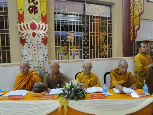 Thượng tọa Thích Minh Hạnh – Chánh Thư ký Ban Trị sự Phật giáo tỉnh Sóc Trăng báo cáo tiến trình tổ chức Đại giới đàn Thiện Mỹ PL 2555 – DL 2011, qua đó có tổng số 213 giới tử đăng ký thọ giới đã qua kỳ thi khảo hạch và hơn 100 Phật tử tại gia xin thọ Bồ Tát giới.