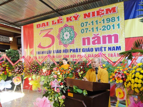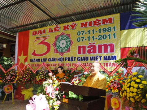 Thượng toạ Thích Thanh Chương tuyên đọc báo cáo gần tròn 20 năm thàng lập Tỉnh hội Phật giáo Sóc Trăng; Tăng ni Sư sãi và Phật tử trong tỉnh luôn giữ vững tinh thần đoàn kết hoà hợp, tứ chúng đồng tu, luôn năng động và sáng tạo, phát triển đi lên cùng thời đại, đi đúng mục tiêu và phương châm của Giáo hội là “Đạo pháp – Dân tộc – Chủ nghĩa Xã hội”.