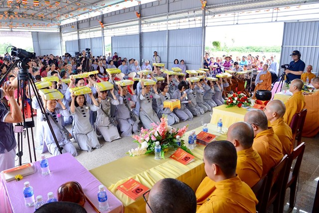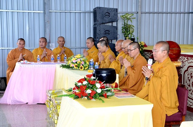 Quang lâm chứng minh buổi lễ có sự hiện diện của TT. Thích Nhật Từ – Ủy viênHĐTS GHPGVN, Trụ trì chùa Quan Âm Đông Hải cùng chư Tôn đức Tăng chùa Giác Ngộ (TP. HCM).