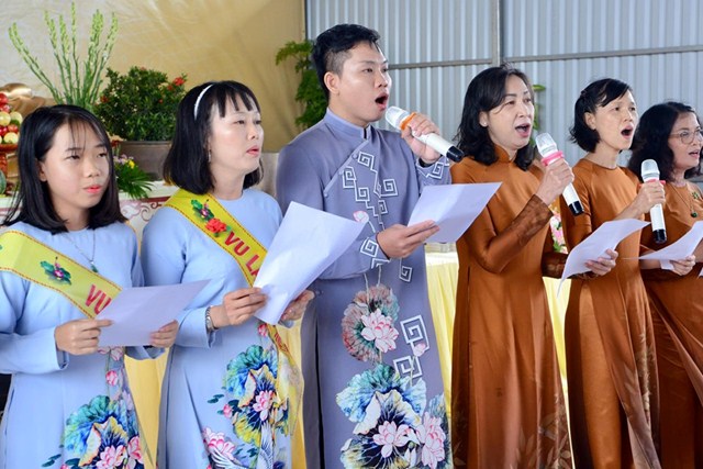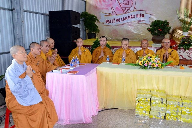 Tại lễ đường, TT. Thích Nhật Từ nhân dịp Đại lễ này đã tiến hành nghi thức quy y Tam Bảo cho hơn 300 thiện nam, tín nữ tại địa phương xã. Sau đó, Ban đạo ca chùa Giác Ngộ đã gửi sự tri ân thành kính đến bốn ân lớn vào từng lời hát qua tiết mục hợp ca “Vu-lan nhạc khúc” (sáng tác: Uy Thi Ca).
