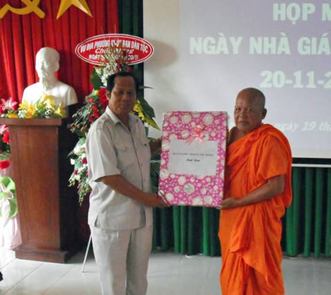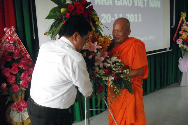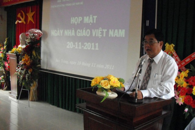 Trong không khí âm áp của buổi họp mặt, ôngThạch Tịnh- Hiệu trưởng nhà trường ôn lại truyền thống ngày Nhà giáo Việt Nam 20-11; Qua đó, nhắc nhở thầy cô, các tăng sinh của trường phải nỗ lực phấn đấu hơn nữa để trở thành những tấm gương sáng trong phong trào thi đua “ Dạy tốt- học tốt”.
