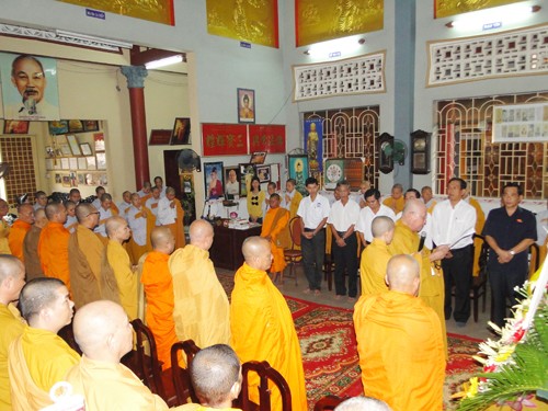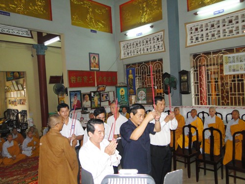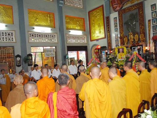 Chủ trì lễ tưởng niệm có Hòa thượng Dương Nhơn – Phó Pháp chủ HĐCM, Phó Chủ tịch HĐTS, Trưởng Ban Trị sự Tỉnh hội Phật giáo tỉnh Sóc Trăng; Hòa thượng Thích Thiện Sanh – Ủy viên HĐTS, Phó Trưởng ban Thường trực Ban Trị sự Tỉnh hội Phật giáo tỉnh Sóc Trăng cùng Chư tôn Hòa thượng, Chư Thượng tọa Đại đức Tăng Ni trong Ban Trị sự Tỉnh hội, Ban Đại diện Phật giáo các huyện, thị, thành; quý vị trụ trì các tự viện trong tỉnh Sóc Trăng đồng về dâng hoa và thắp hương tưởng niệm.
