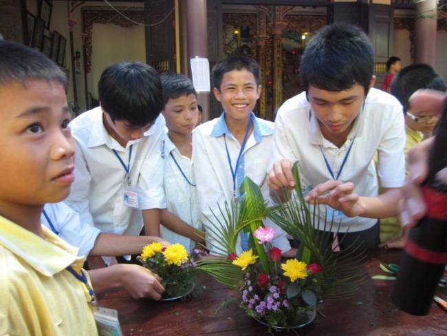 Sau giờ giải lao, khóa sinh được hướng dẫn cách chọn và cắm hoa. Dưới sự hướng dẫn uyển chuyển của SC. Hoàn Toại và SC. Liên Lý, sau khi học xong, các bạn đã tự trổ tài và thuyết trình tác phẩm của mình. Những lời thuyết trình ngây ngô nhưng chứa đựng cả tâm tình và ước mong của những người trẻ tuổi, như lòng từ bi của đức Phật, tình đoàn kết của thế giới,…