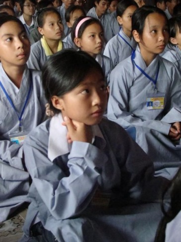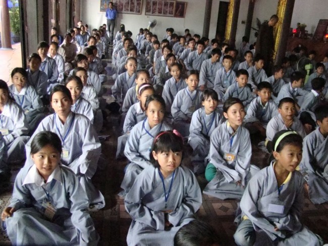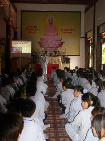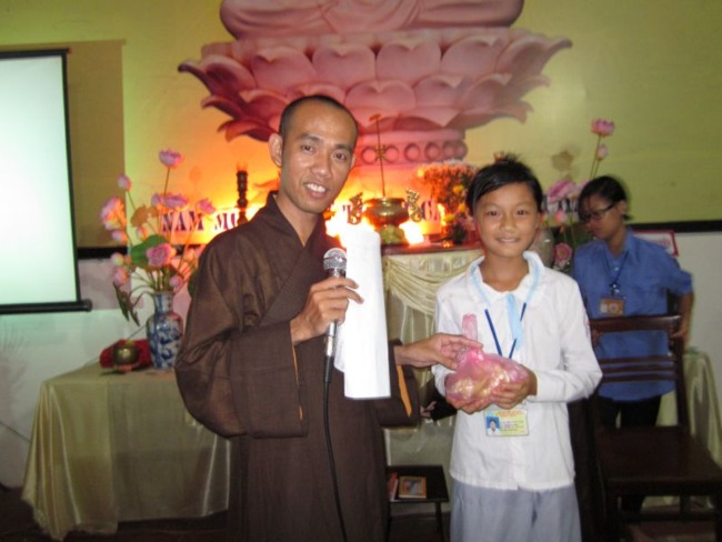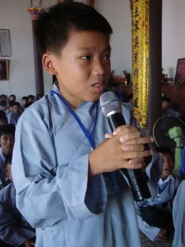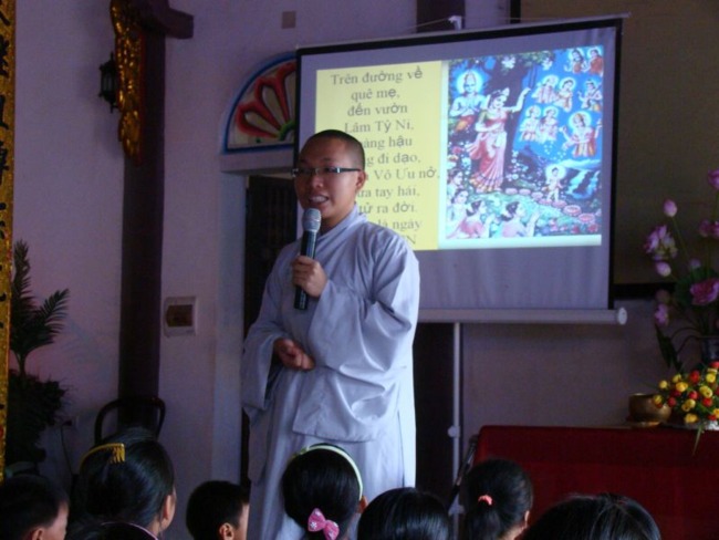Sau câu chuyện đầu ngày do thầy Tánh Khả và thầy Pháp Như phụ trách, các em bắt đầu học về Cuộc đời đức Phật Thích Ca Mâu Ni. Từng ánh mắt thơ ngây như ngạc nhiên và thích thú trước những hình ảnh của đức Phật được trình chiếu trên Power point. Sau buổi học, các em được ôn bài tại chỗ và nhận phần thưởng nếu trả lời đúng những câu hỏi về bài học mà quý thầy cô đưa ra đã thu hút sự chú ý của cả hội chúng.