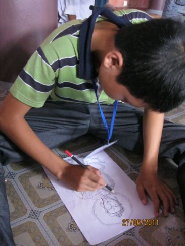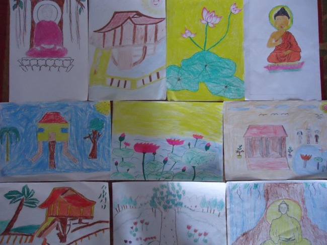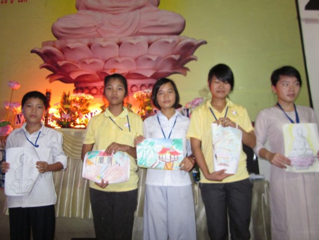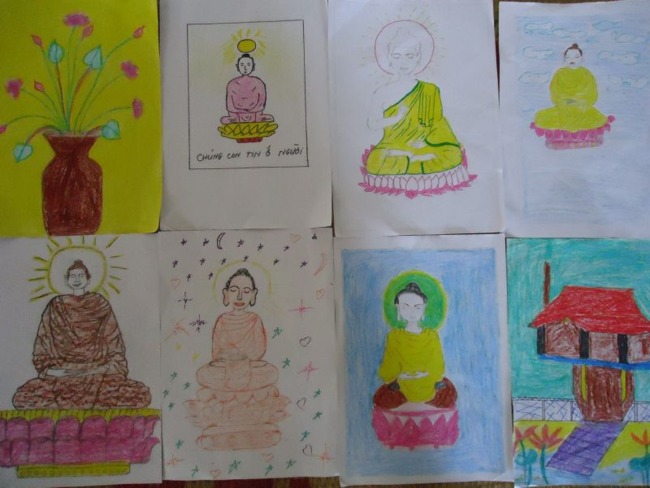 Buổi chiều, các bạn tham dự cuộc thi vẽ về chủ đề Phật pháp trong em. Những ý tưởng ngộ nghĩnh nhưng cũng rất sáng tạo của các em, đã tạo ra những bức tranh thật sinh động. Qua cuộc thi đó, BTC cũng phát hiện ra những bạn có năng khiếu hội họa và tặng quà khuyến khích đối với những bức tranh đẹp, sáng tạo.