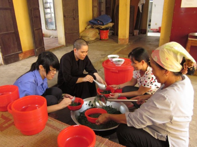 Buổi sáng trong lành đến với các em bằng một thời kinh ngắn, những bước chân thiền hành thanh thoát và buổi điểm tâm nhẹ dưới sự hướng dẫn của thầy Chủ nhiệm Thích Tuệ Minh.