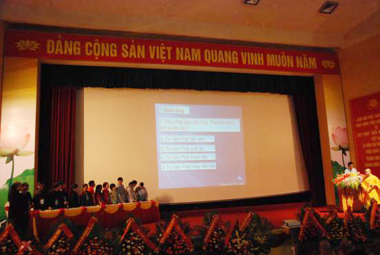 Trong phần thi này, cả hội trường đã đồng thanh hát vang bài đạo ca Phật giáo Việt Nam, tăng thêm niềm tự hào và hân hoan cho chúng Phật tử.