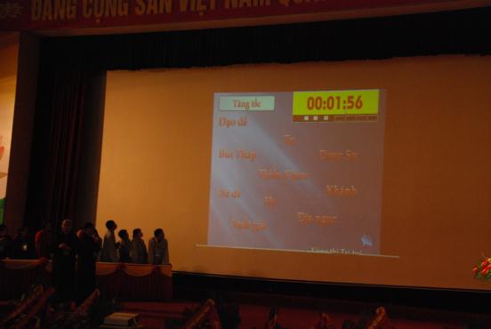 Phần về đích của vòng thi trắc nghiệm có 8 câu hỏi, mỗi câu hỏi có 3 gợi ý từ khó đến dễ. Điều thật đáng hoan hỉ là dù có câu hỏi không dễ, nhưng các đội thi đều trả lời được. Nhiều câu hỏi được trả lời ngay từ gợi ý đầu tiên.