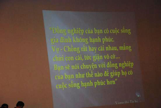 Cả hội trường liên tục có những tán thưởng cho đội thi với cách diễn sáng tạo, hấp dẫn như diễn viên chuyên nghiệp, vừa đời thường mà lại không kém duyên dáng, hài hước. Đặc biệt, đội chùa Nam Hải đã rất khéo léo vận dụng giáo lý Phật pháp trong lời tư vấn của mình, được chư Tôn đức trong Ban giám khảo đánh giá cao.