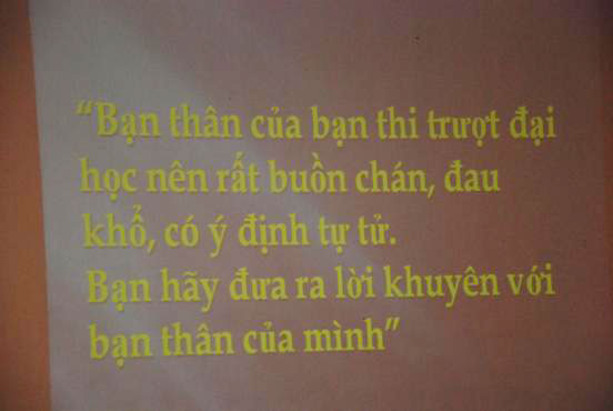 Đội chùa Vĩnh Khánh, với tình huống “Bạn thân của bạn thi trượt đại học nên rất buồn chán, đau khổ, có ý định tự tử. Bạn hãy đưa ra lời khuyên với bạn thân của mình”, đã phải đóng vai nhỏ hơn tuổi thực rất nhiều, nên cách vào vai đôi khi chưa được thật, song đã đưa ra được những lời khuyên thiết thực.
