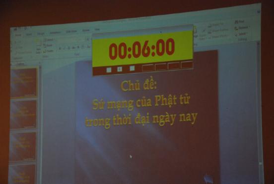 Mỗi thí sinh có phong cách thuyết trình khác nhau, song đều nêu được những điều cốt lõi của chủ đề. Phật tử chùa Vĩnh Khánh đã chọn được cách thuyết trình riêng, không đao to, búa lớn mà rất chân thực, gần gũi khi nêu những trải nghiệm của chính bản thân mình. Chùa Vĩnh Khánh cũng đạt được giải Thí sinh thuyết trình hay nhất.