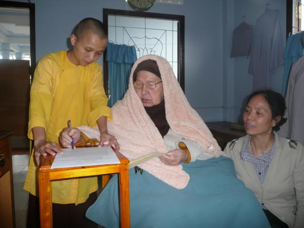 Mang bệnh giật cơ trên đầu mấy chục năm nay, nhưng chưa từng vì đó mà Sư bà nghỉ ngơi. Có thời gian, để làm xong tác phẩm “Hai Cánh Nhà Ni” cho các Tỳ-kheo-ni mới thọ giới nắm vững giới điều, Sư bà đã thức suốt cả một tháng không ngủ.