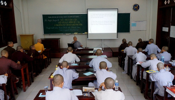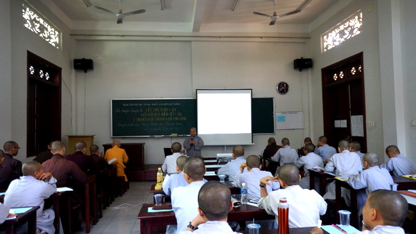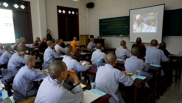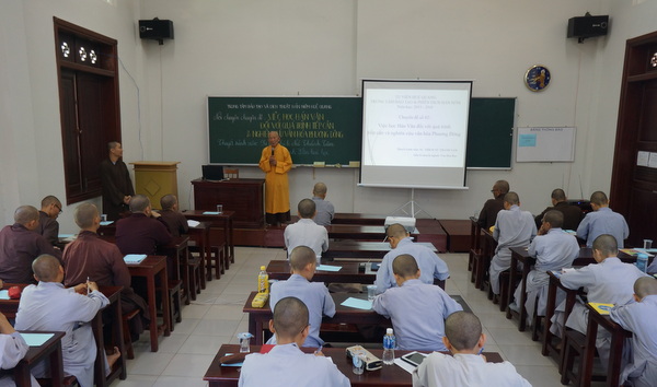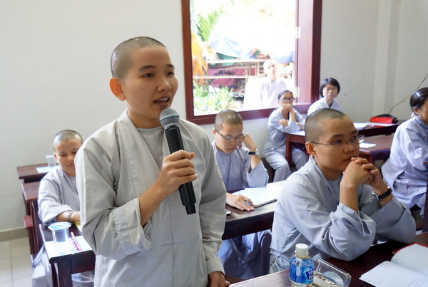 Buổi giao lưu có những câu hỏi mang tính thời sự và ứng dụng của Tăng Ni Học viên đưa ra, tạo nên không khí học tập song phương giữa thuyết trình viên và thính chúng.