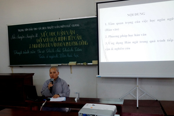 Trong xuyên suốt 2 tiếng đồng hồ, Sư cô đã nhấn mạnh tầm quan trọng của việc học chữ Hán, phương pháp học Hán văn và việc ứng dụng ngôn ngữ trong vấn đề tiếp cận và nghiên cứu văn hóa nói chung và văn hóa Phật giáo nói riêng.