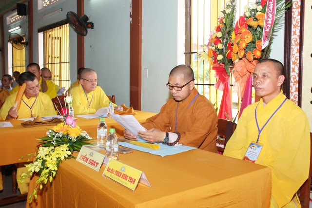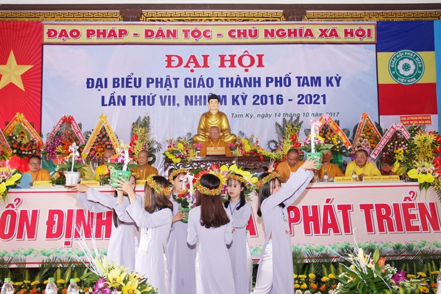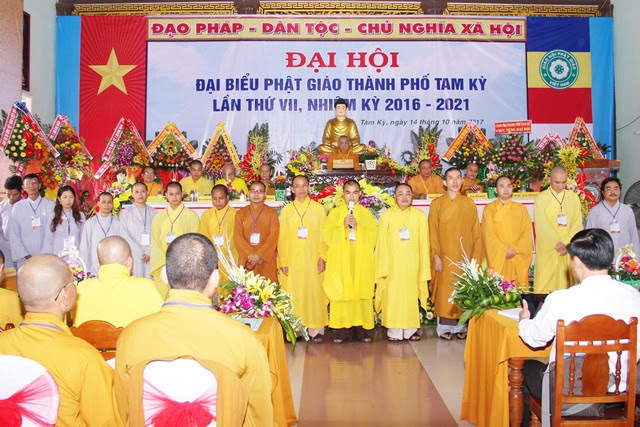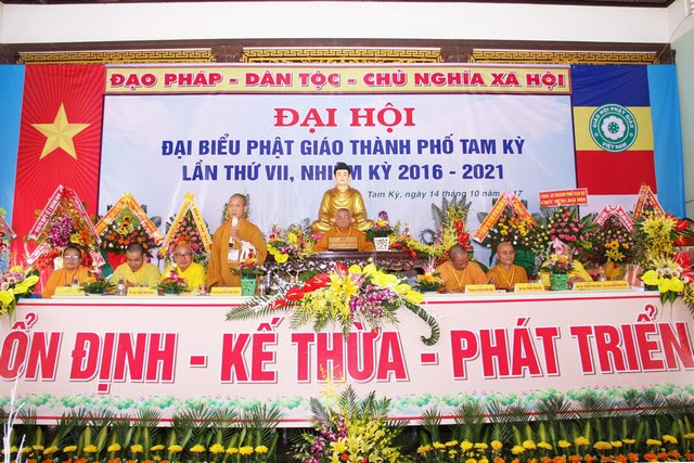 Tiếp đó, ĐĐ.Thích Giải Quảng, Phó ban kiêm Chánh thư ký BTS PG tỉnh Quảng Nam thay mặt Ban Thường trực BTS PG tỉnh lấy ý kiến đại biểu suy cử thành phần nhân sự BTS GHPGVN thành phố Tam Kỳ nhiệm kỳ VII (2016 – 2021) gồm 18 vị thành viên do ĐĐ.Thích Viên Tánh đảm nhận chức vụ Trưởng ban, ĐĐ.Thích Tịnh Châu làm Phó ban Thường trực; ĐĐ.Thích Tịnh Trí làm Phó ban kiêm Thư ký và ĐĐ.Thích Hưng Trạm làm Phó ban.