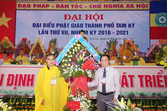 Đại diện tân BTS GHPGVN thành phố Tam Kỳ nhiệm kỳ VII (2016 – 2021) phát biểu nhận nhiệm vụ, ĐĐ.Thích Viên Tánh nhấn mạnh “Toàn thể tân BTS thành phố nhiệm kỳ VII sẽ đoàn kết, cùng nhau chăm lo Phật sự, luôn tuân thủ pháp luật nhà nước và mong tiếp tục nhận được sự quan tâm để hoàn thành trọng trách Giáo hội giao phó”.