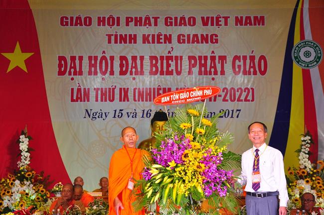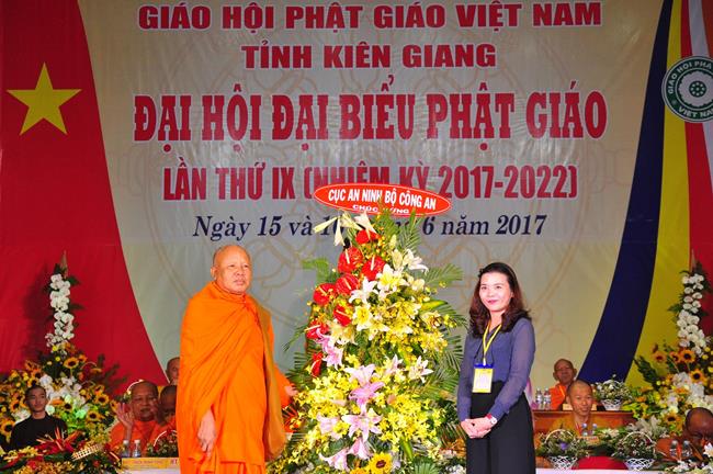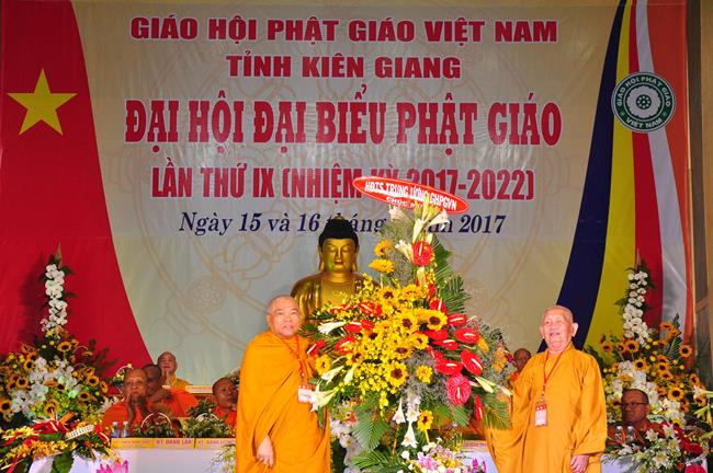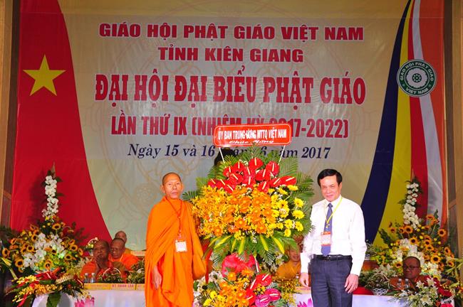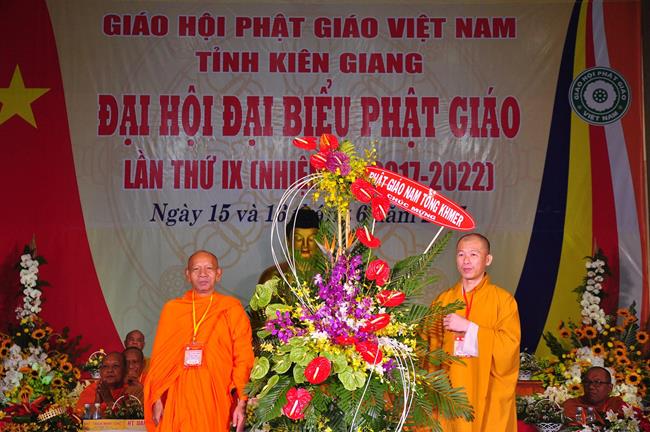 Tại Đại hội, Ban Tổ chức trận trọng nhận những lẵng hoa chúc mừng của Hội đồng Trị sự GHPGVN, Ban Hoằng pháp TƯ; Ban Văn hóa TƯ, Ủy ban Trung ương MTTQVN, Ban Tôn giáo Chính phủ, Cục An ninh Bộ Công An, Tỉnh ủy, HĐND, UBND, UBMTTQVN tỉnh Kiên Giang, Sở Công An tỉnh; Trường Đại học KHXH&NV Hà Nội, Ban Trị sự các tỉnh thành, Tôn giáo bạn, sở ban ngành trong tỉnh Kiên Giang.