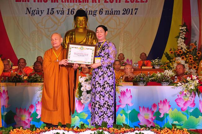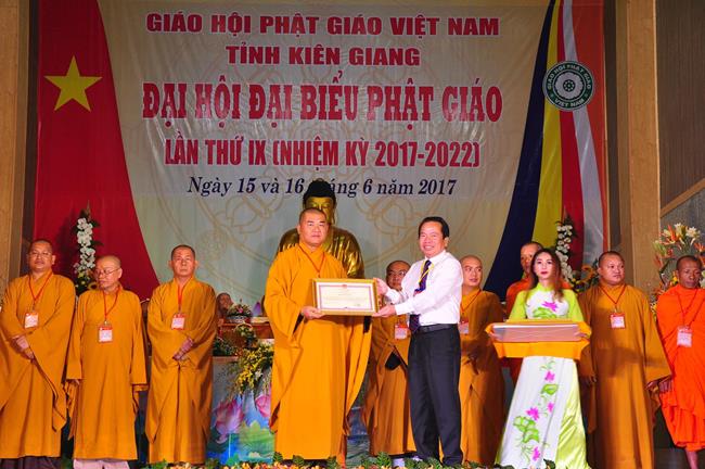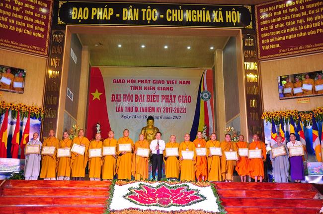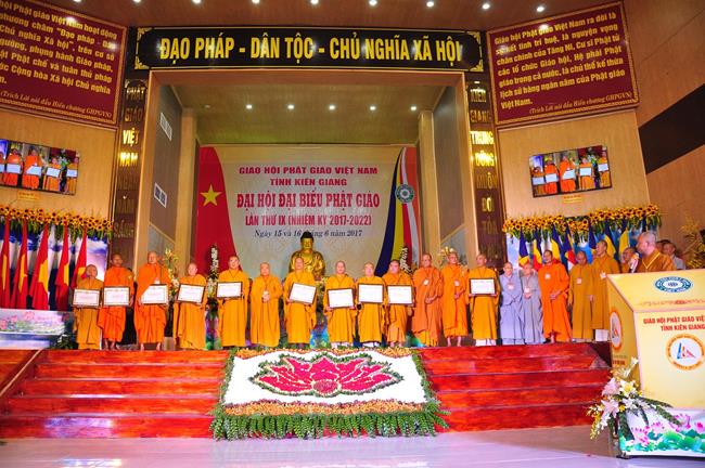 Tại Đại hội, Thường trực HĐTS quyết định tặng Bằng Tuyên Dương Công Đức cho 13 tập thể và 35 cá nhân xuất sắc trong hoạt động Phật sự nhiệm kỳ qua; Đồng thời, TT HĐTS tặng bằng Tuyên Dương Công Đức cho Ủy ban MTTQVN tỉnh Kiên Giang.