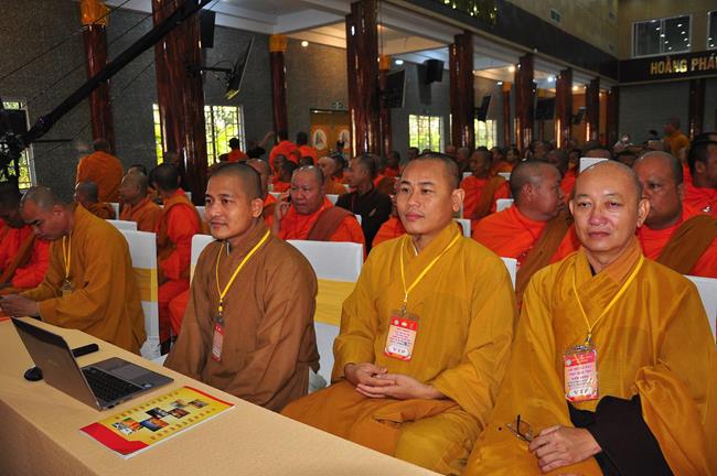 TT Thích Minh Nhẫn: UVHĐTS, Phó ban kiêm Chánh Thư ký GHPGVN tỉnh Kiên Giang Báo cáo tổng kết hoạt động Phật sự lần thứ VIII, nhiệm kỳ (2012-2017) và phương hướng hoạt động Phật sự lần thứ IX, nhiệm kỳ (2017-2022). Thượng tọa cho biết: Kiên Giang có 206 tự viện, tăng hơn nhiệm kỳ trước 17 tự viện (Nam tông Khmer 76 tự viện; Nam tông kinh 1 tự viện; 7 tự viện được công nhận Di tích Lịch sử cấp quốc gia; 03 tự viện được công nhận Di tích Lịch sử cấp tỉnh); bổ nhiệm trụ trì có 32 Tăng Ni; tổ chức 2 Đại giới đàn cho 300 Tăng Ni thọ giới; Đang đào tạo khóa 6 Trung cấp Phật học; nhiệm kỳ qua có 2 vị tốt nghiệp tiến sĩ; thạc sĩ: 12 vị; cao cấp giảng sư: 8 vị; cử nhân Phật học và thế học: 67 vị; nghiên cứu sinh: 4 vị; hằng năm mở lớp tập huấn hành chánh, trụ trì và 2 khóa tập huấn hoằng pháp viên cho Phật tử; mở 23 lớp Sơ cấp Pali; 94 lớp Kinh Luận Giới; 9 vị tốt nghiệp khóa I Học viện Phật giáo Nam tông Khmer tại Tp Cần Thơ; 42 vị tốt nghiệp lớp Trung cấp Pali Nam bộ; 12 gia đình Phật tử; hoạt động từ thiện xã hội đạt 334.719.949.000 đ.