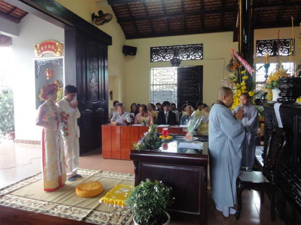 Buổi lễ diễn ra thật trang nghiêm dưới sự chứng minh của Ni sư TN. Tịnh Nghiêm – trụ trì chùa Tịnh Nghiêm cùng gia đình hai họ và đông đảo Phật tử đồng tham dự.