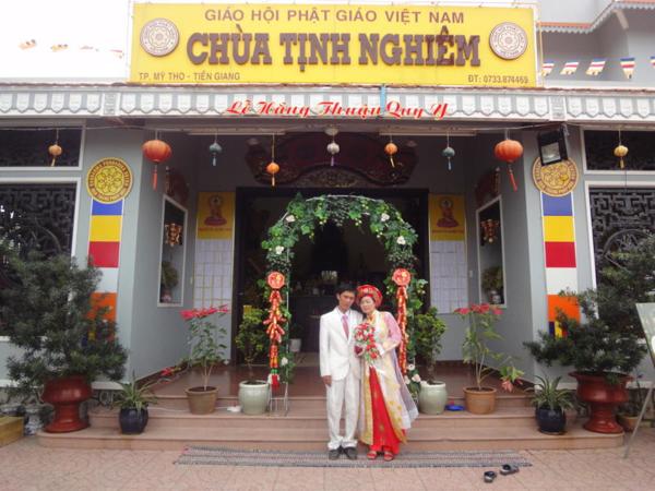Được sự thỉnh cầu của 2 bên gia đình Phật tử, chùa Tịnh Nghiêm hoan hỷ và vinh dự đại diện tổ chức nghi lễ chúc phúc – quy y cho hai trẻ. Sự hiện diện đông đảo của quý Phật tử đang có mặt là lời chúc phúc chân thành nhất cho cô dâu, chú rễ, đồng thời còn thể hiện tình đạo thiêng liêng của người đi trước.