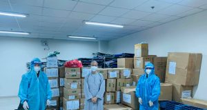 Nhóm tình nguyện viên Phật giáo tặng đồ bảo hộ đến...
