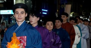 Dàn hoa hậu dự lễ rước tượng Đức Phật mừng Đại...