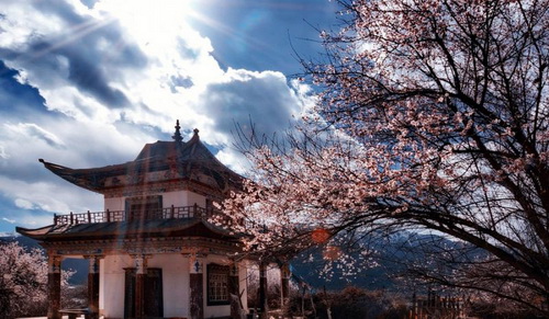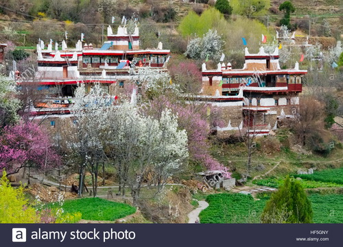 Riêng Tây Tạng ở vùng núi cao có khí hậu khá khắc nghiệt, nhưng vào mùa xuân từ thủ đô Lhasa đến các vùng thảo nguyên, thung lũng, hoa đào cũng chen nhau khoe sắc khắp nơi. Những cây đào an nhiên tự tại bên những Tu viện, Bảo tháp, Thánh tích càng tôn lên giá trị kiến trúc độc đáo của những công trình Phật giáo xứ tuyết này.