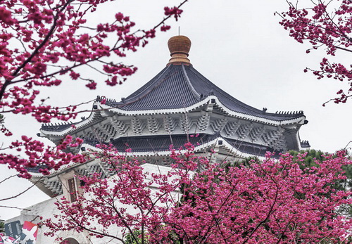 Hoa đào rực rỡ cảnh chùa mới nay.