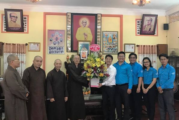 HT.Thích Hiển Đức – Phó Văn Phòng BTS GHPGVN TP.HCM đã tri ân sự quan tâm của Thành đoàn TP.HCM, Hội Liên Hiệp Thanh Niên Việt Nam TP.HCM, đồng thời tặng hoa chúc mừng đến anh Phạm Hồng Sơn – Tân Bí Thư Thành Đoàn TP.HCM. Hòa thượng phát biểu thêm, với nhiệm vụ và vai trò mới này, anh sẽ tiếp tục dẫn dắt công tác Đoàn và phong trào thanh thiếu nhi TP đạt nhiều kết quả hơn thời gian tới.