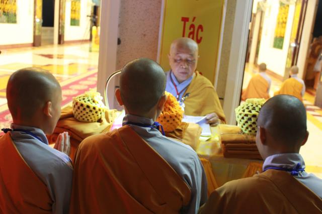 BTC giới trường Ni dựa vào bảng điểm khảo thí đã sắp xếp thứ tự mỗi đàn 3 vị giới tử, đảnh lễ Hội đồng Thập sư, sau đó quý Ngài tác pháp Yết ma, chính thức đăng đàn truyền giới Tỳ kheo ni. Hội đồng Tam sư, Thất chứng đã trao truyền 3 y, bình bát, tọa cụ,… cho các vị tân tỳ kheo ni, như trao lại gia tài chánh pháp cho đàn hậu học.