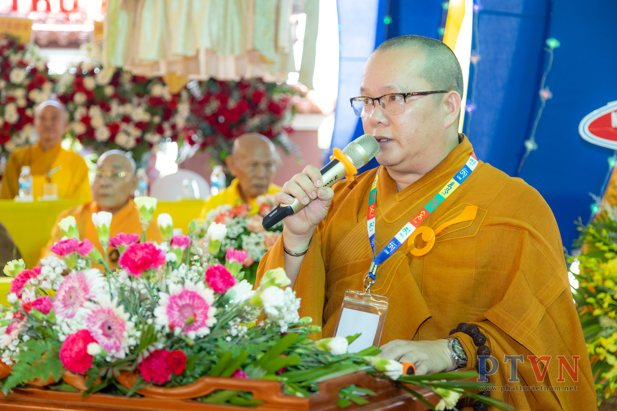 Phát biểu khai mạc, Hoà thượng Thích Phước Minh – đương nhiệm trụ trì Tổ đình Thiên Bình đã điểm qua lịch sử ngôi Tổ đình từ ngày kiến lập đến khi nhận được Sắc phong vào thời vua Bảo Đại cùng 2 tấm hoành phi “Vương Hộ Pháp”, “Quốc Sùng Tăng” rồi từ đó Sắc tứ Thiên Bình phát triển theo năm tháng, tiếp tăng độ chúng, chư thiền đức làm tròn sự mệnh của người sứ giả Như Lai, phát huy giá trị ngôi già lam giữa lòng dân tộc. Đến nay, trước những biến thiên của thời đại, để chấn hưng môn phong, Ban Quản trị Môn phong Tổ đình Thiên Bình đã chọn ngày 15/6 năm Nhâm Dần để làm lễ Đặt đá Đại trùng tu Đại điện Tổ đình và trạch cử ngôi vị kế nhiệm trụ trì.