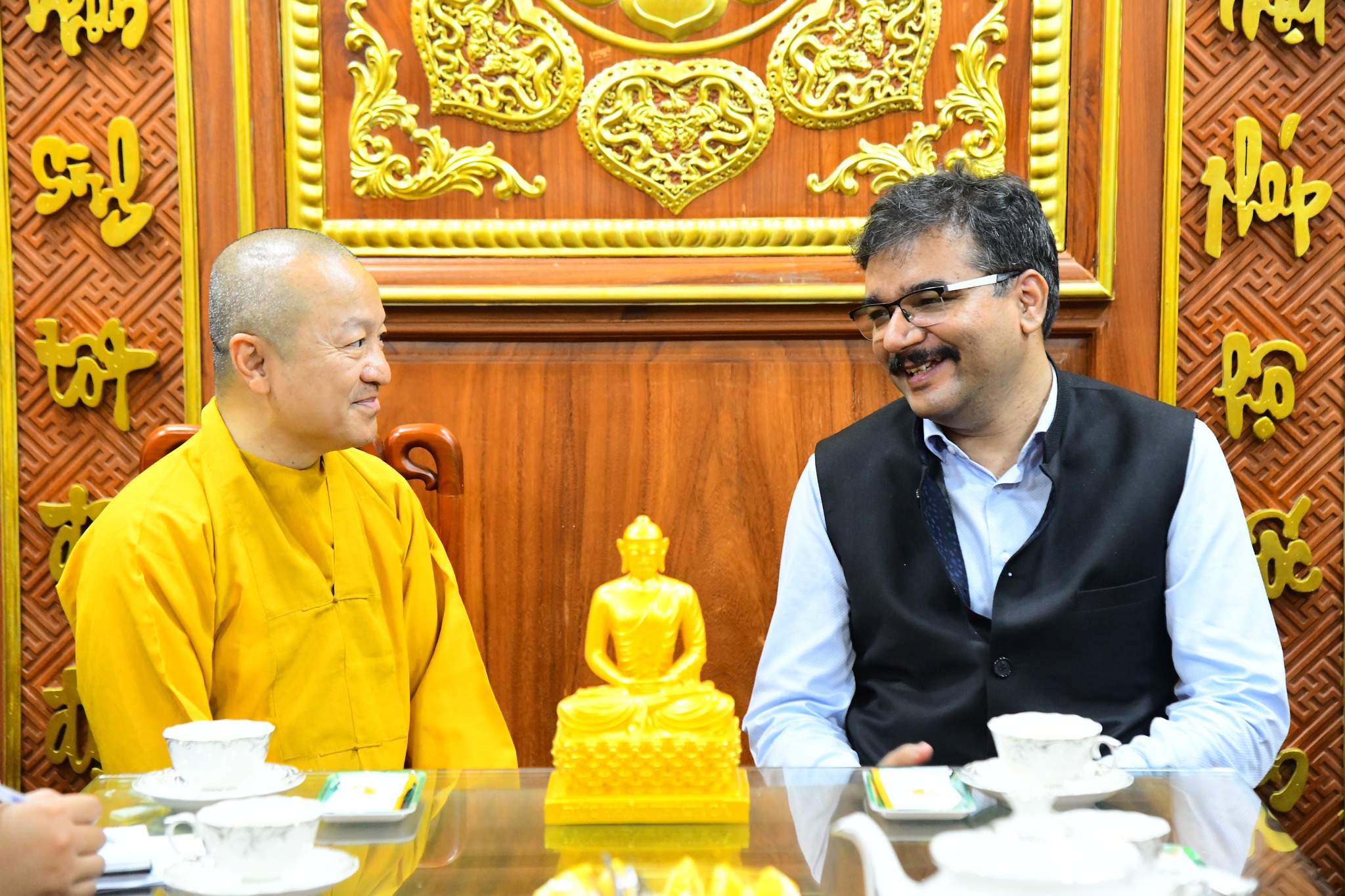 Trưa 28-03-2025, Tân Tổng lãnh sự Ấn Độ tại TP.HCM, TS. Vipra Pandey, đến thăm chùa Giác Ngộ và làm việc với Thượng tọa Thích Nhật Từ về việc hỗ trợ tổ chức Đại lễ Vesak Liên Hiệp Quốc 2025.