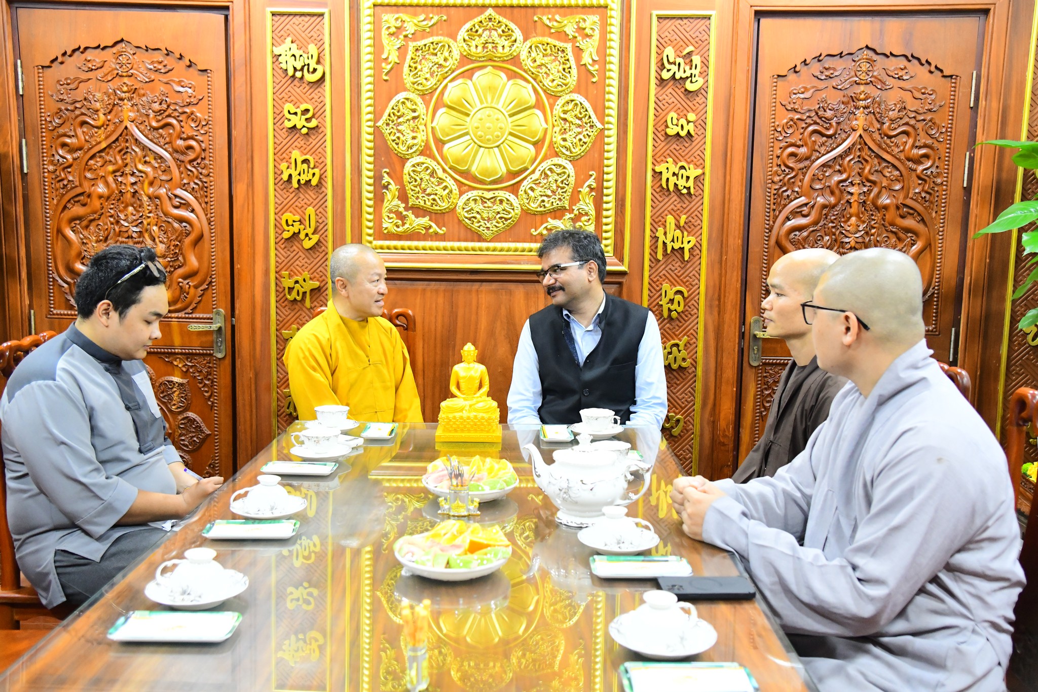 Trưa 28-03-2025, Tân Tổng lãnh sự Ấn Độ tại TP.HCM, TS. Vipra Pandey, đến thăm chùa Giác Ngộ và làm việc với Thượng tọa Thích Nhật Từ về việc hỗ trợ tổ chức Đại lễ Vesak Liên Hiệp Quốc 2025.