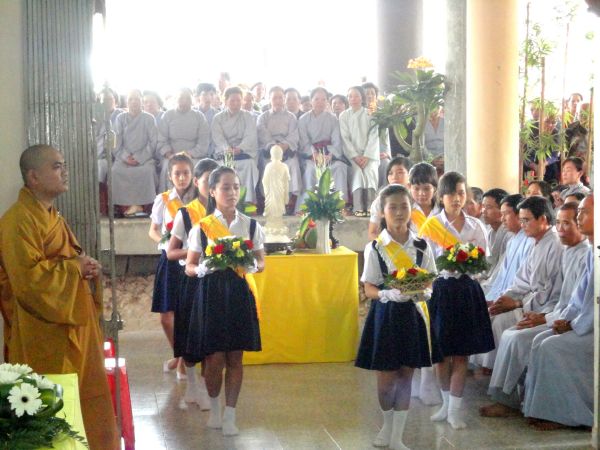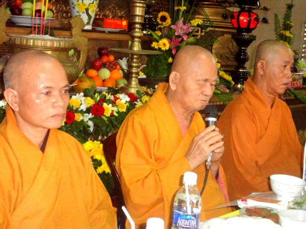 Đã hơn mười mùa lá rụng đi qua, ngôi Thiền viện ngày thêm buồn vắng bóng, ân sư đi rồi chúng con đã mất một vầng trăng. Để tưởng nhớ đến thâm tình linh sơn cốt nhục, mỗi mùa thu về chúng con thiết lễ trai nghi, dâng hương tưởng niệm, tỏ chút lòng thành báo đền ân đức tôn sư. Trong làn khói trắng nghi ngút bay cao, hòa quyện vào lời kinh cầu nguyện của chư tôn thiền đức Tăng Ni, đại lễ cúng dường trai tăng hôm nay, tạo chút phước lành nguyện thầy cao đăng thánh cảnh. Nơi cõi Ta bà lòng chúng con luôn tưởng nhớ, nương gót thầy hoằng hóa độ quần mê.