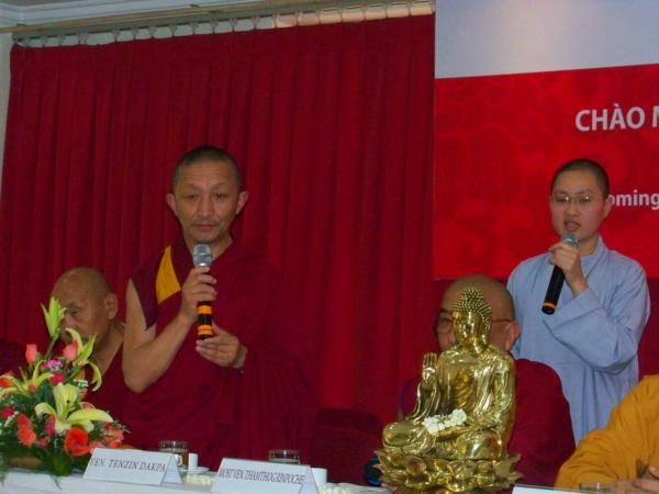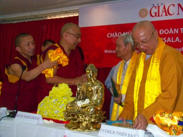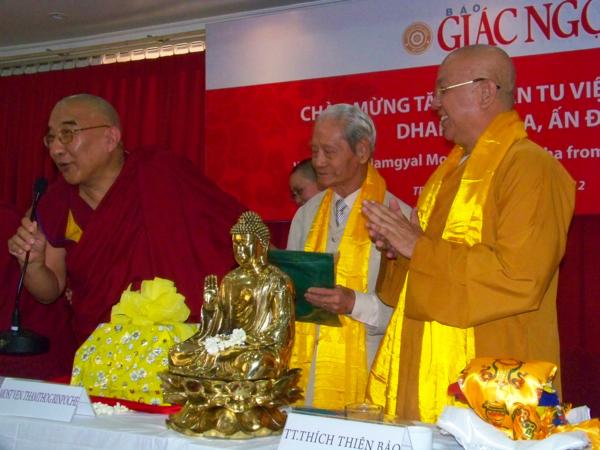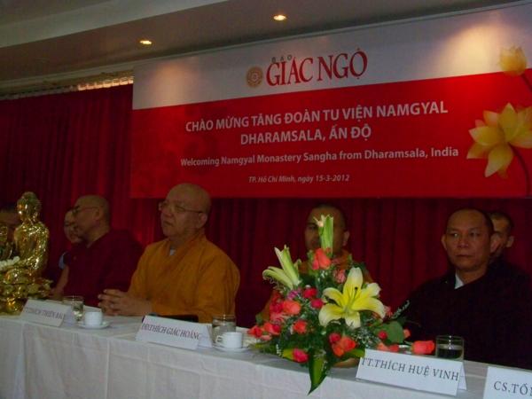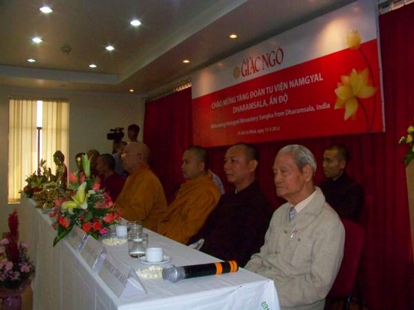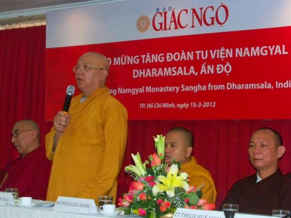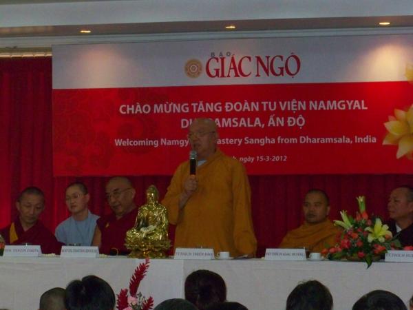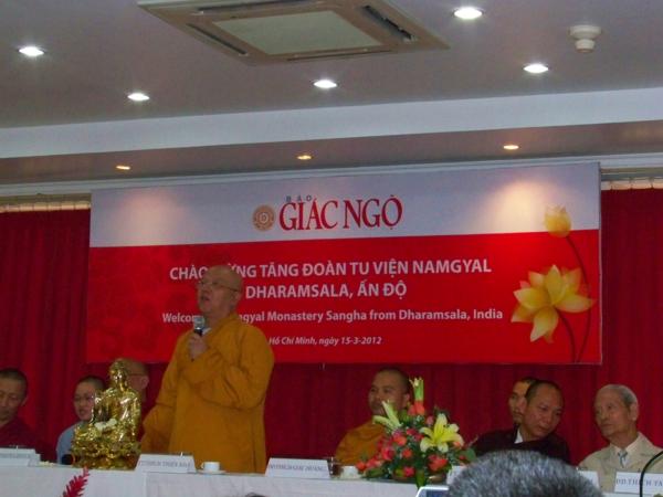 Phát biểu đón tiếp phái đoàn, thay mặt HT Tổng Biên tập Thích Trí Quảng và BBT Báo Giác Ngộ. TT. Thích Thiện Bảo đã gửi lời ân cần thăm hỏi gửi lời chúc đầy an lành đến Tăng đoàn tu viện Namgyal và Thượng tọa cũng đã giới thiệu đôi nét của Tòa soạn Báo Giác Ngộ cũng như tình hình những thành tựu, những hoạt động nổi bật của Phật giáo Việt Nam nói chung Phật giáo TP. Hồ Chí Minh nói riêng.