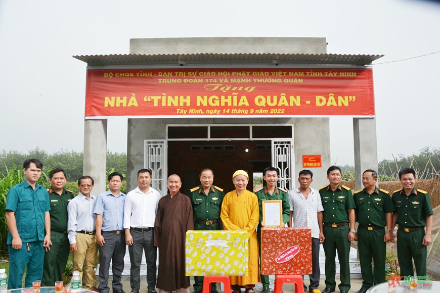 Chiến sĩ Hồ Văn Hiền, thuộc Trung đoàn 174 (Bộ CHQS Tây Ninh), có hoàn cảnh khó khăn về nhà ở. Căn nhà có diện tích xây dựng 74 m2, mái lợp tôn, nền lát gạch men. Tổng kinh phí xây dựng 160 triệu đồng, trong đó, Bộ CHQS tỉnh Tây Ninh và Ban Trị sự Giáo hội Phật giáo Việt Nam tỉnh Tây Ninh hỗ trợ 80 triệu đồng.