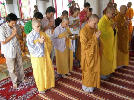 Theo truyền thống của Phật giáo Ấn-độ vào khoảng đầu mùa hạ, để chào mừng ngày Đản sinh của Đức Phật, các Phật tử thường họp nhóm lại tại một ngôi chùa gần nơi mình ở và thực tập theo hạnh khất sĩ Tăng già trong khoảng thời gian hai tuần, những hình ảnh này làm sống lại Phật giáo thời Đức Thế Tôn còn tại thế.