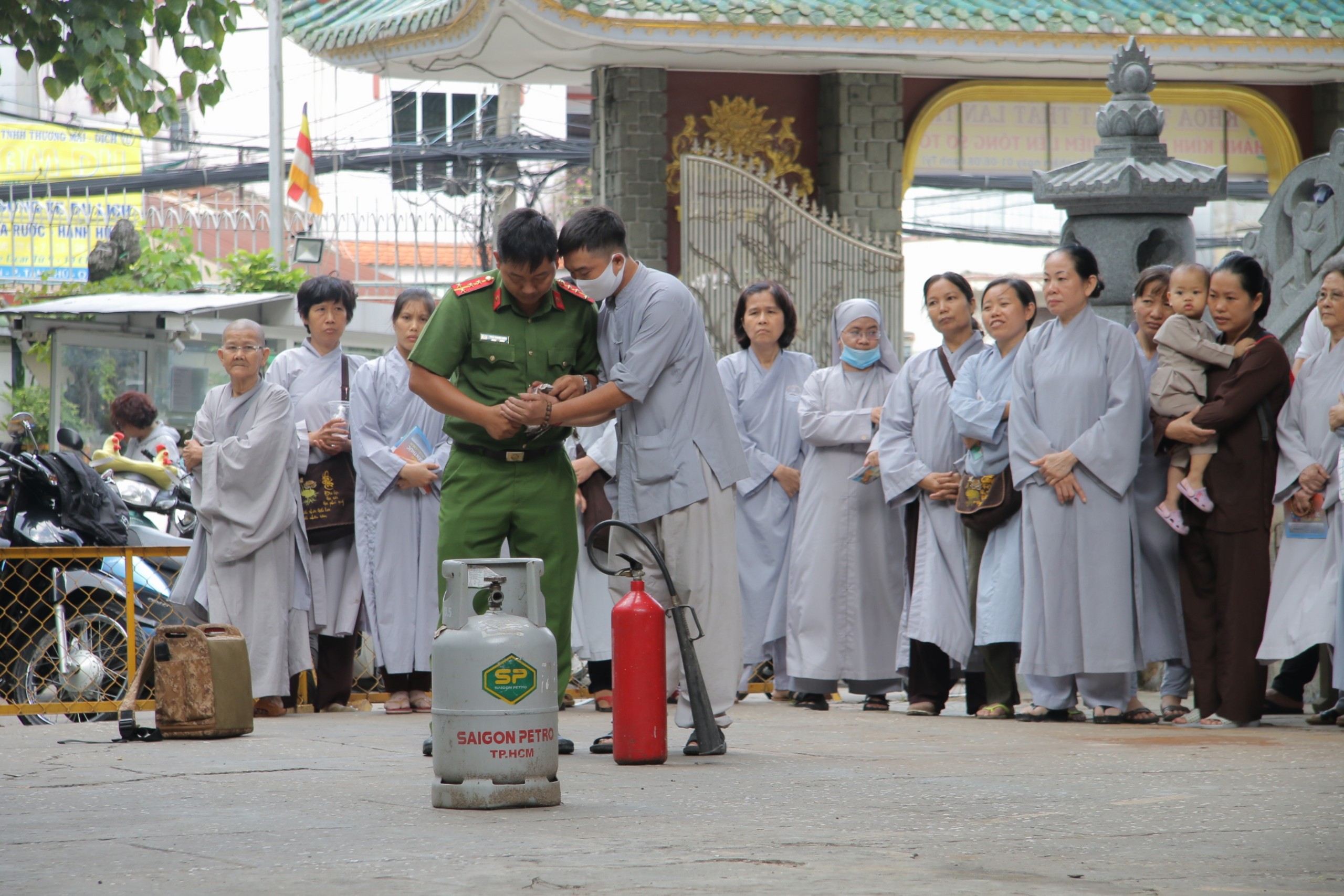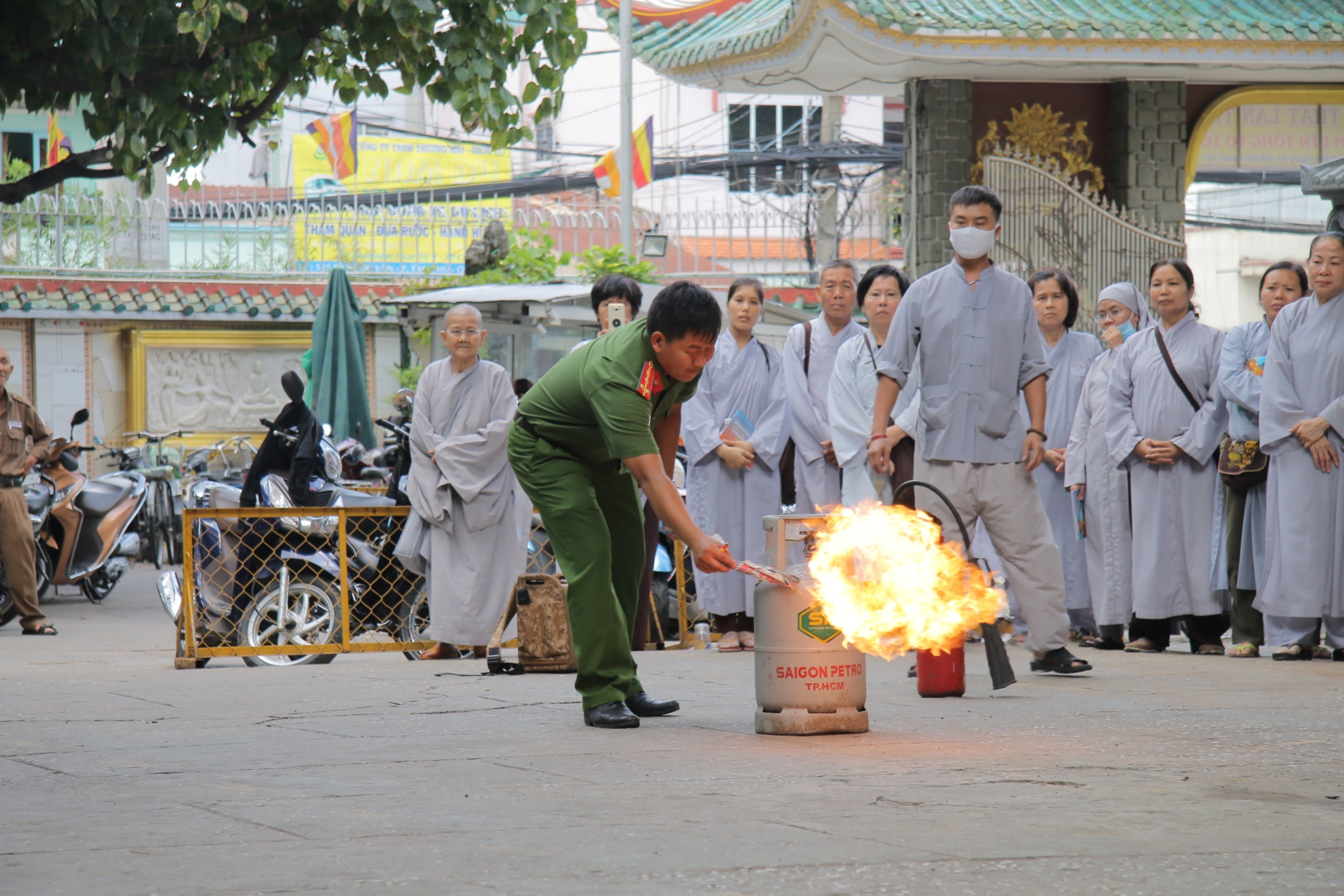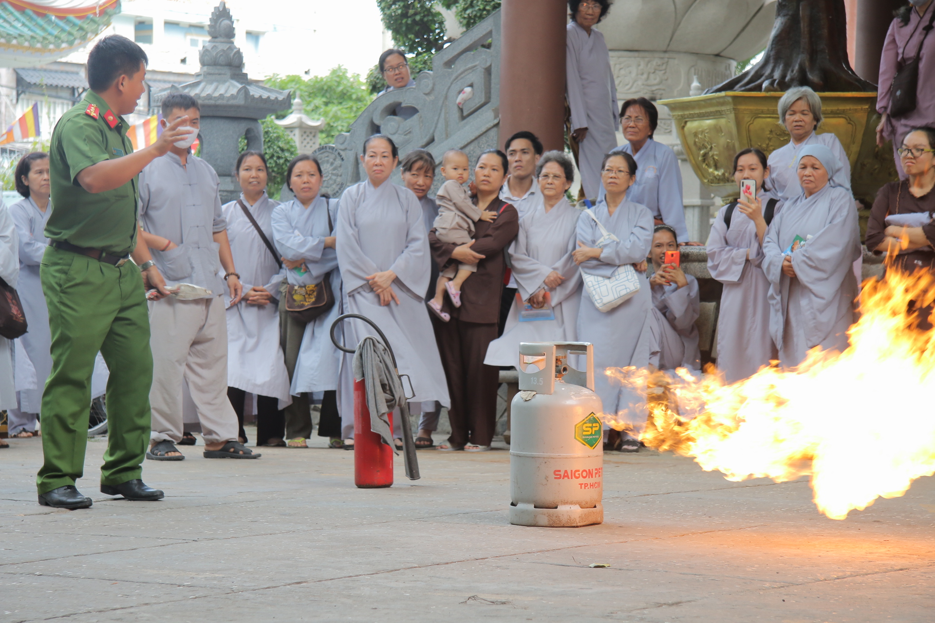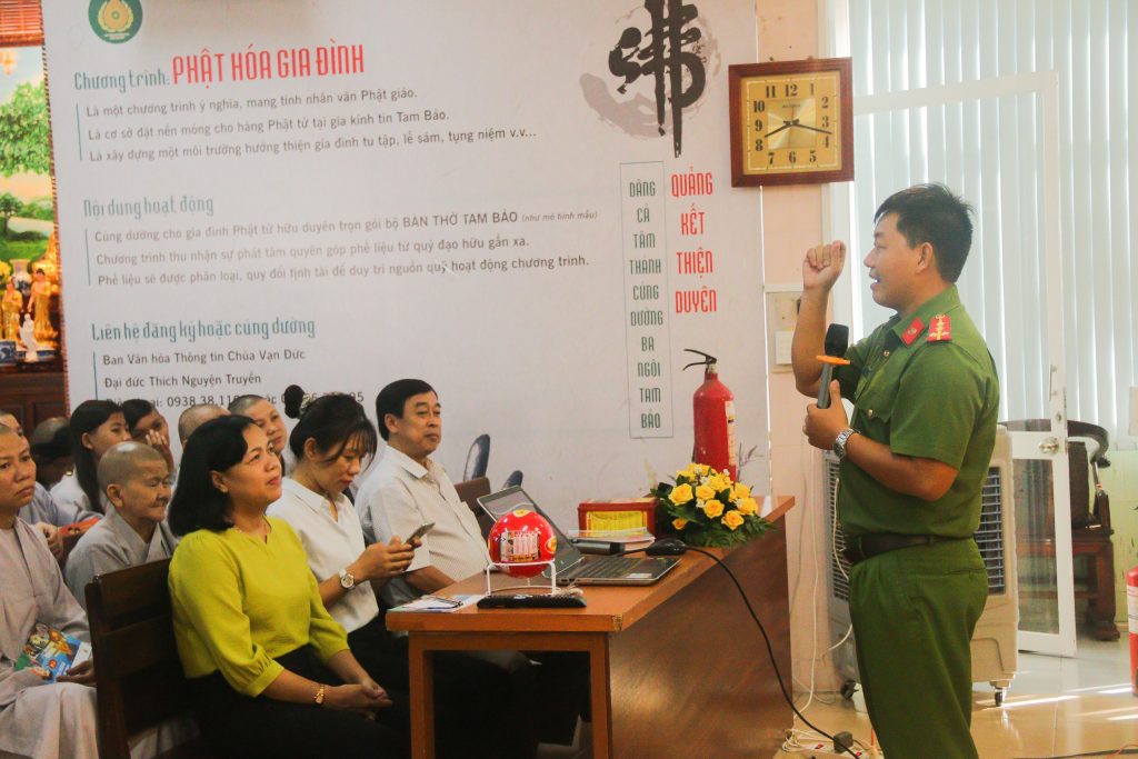 Tại đây, các chiến sĩ Cảnh sát PCCC&CNCH đã triển khai 02 nội dung: lý thuyết và thực hành. Buổi học này đã giúp đạo tràng chùa Vạn Đức rèn luyện, nâng cao ý thức chấp hành các quy định của pháp luật về PCCC; trang bị kiến thức, rèn luyện kỹ năng cơ bản và các thao tác sử dụng hiệu quả trang thiết bị, dụng cụ phòng cháy, chữa cháy, nâng cao năng lực PCCC, cứu nạn, cứu hộ tại chỗ.