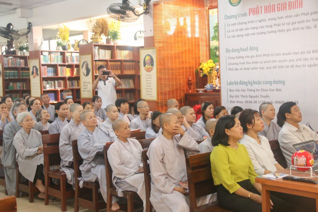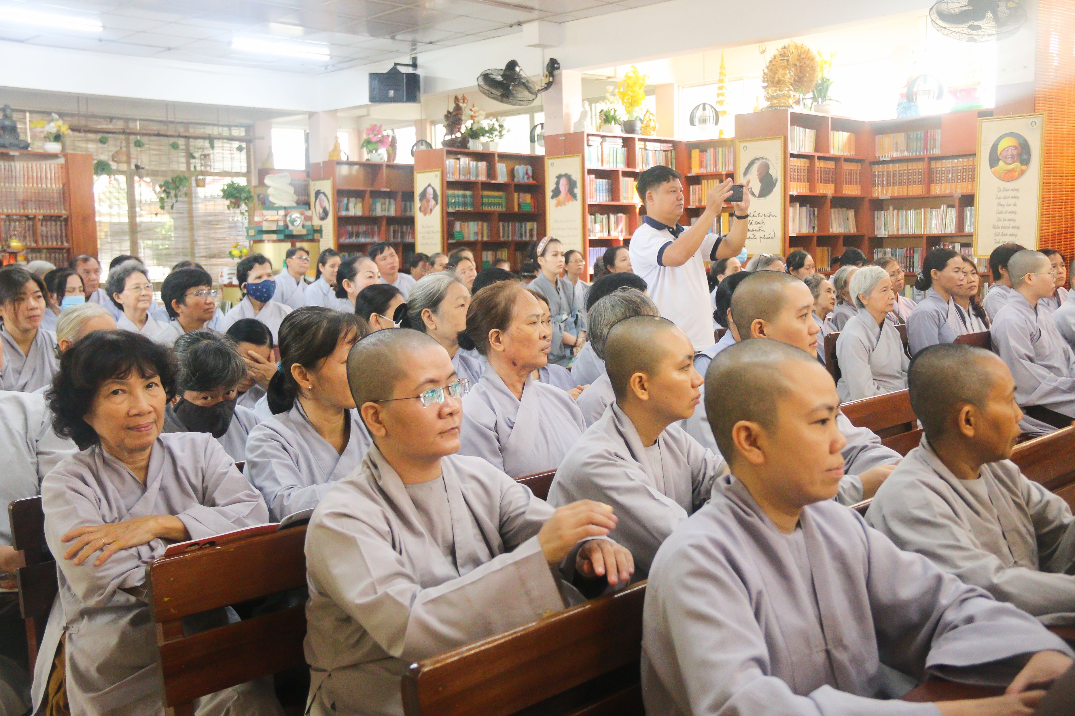 Buổi học diễn ra dưới sự chứng minh của Hoà thượng Thích Hoằng Tri – Phó ban Thường trực BTS GHPGVN Q. Thủ Đức, Trụ trì chùa Vạn Đức, chư tôn đức Tăng, Ni chùa Vạn Đức cùng sự tham dự của đông đảo quý Phật tử.