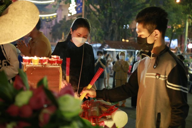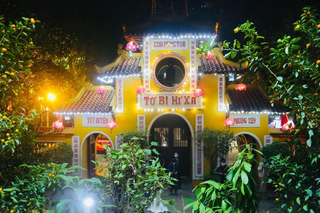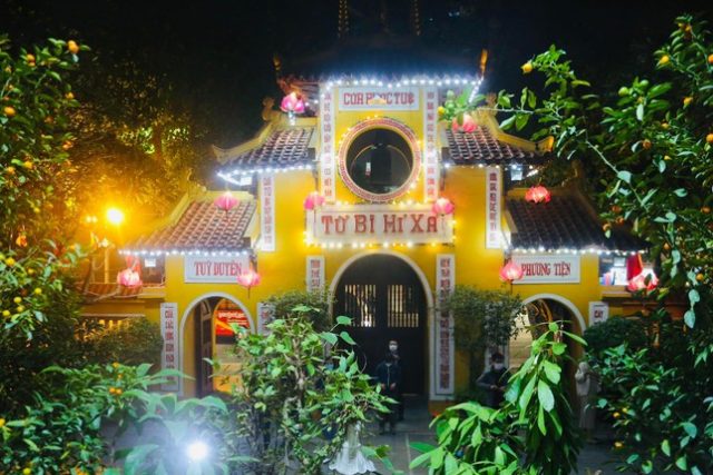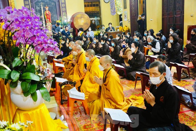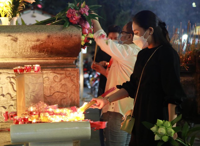 Chiều tối 19/11, nhiều Phật tử, người dân đến chùa Vĩnh Nghiêm (quận 3, TPHCM) lễ Phật, cầu điều phúc lành cho gia đình trong dịp Rằm tháng 10 Âm lịch. Đây cũng là dịp người dân thành kính cầu niệm, tưởng nhớ đồng bào, thân nhân qua đời vì dịch bệnh COVID-19. Ảnh: Nguyễn Tùng