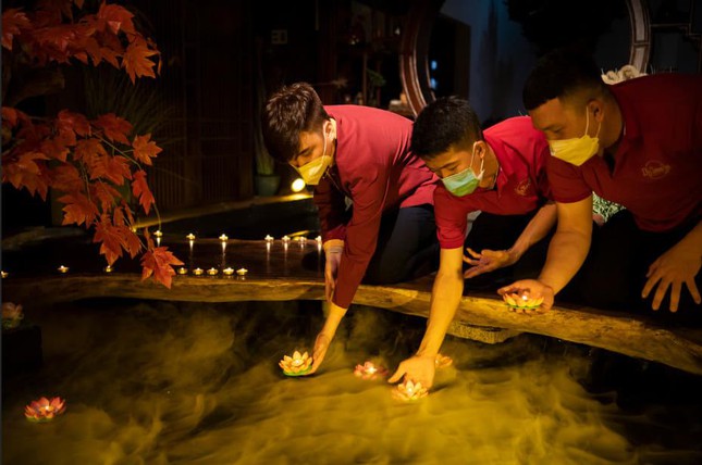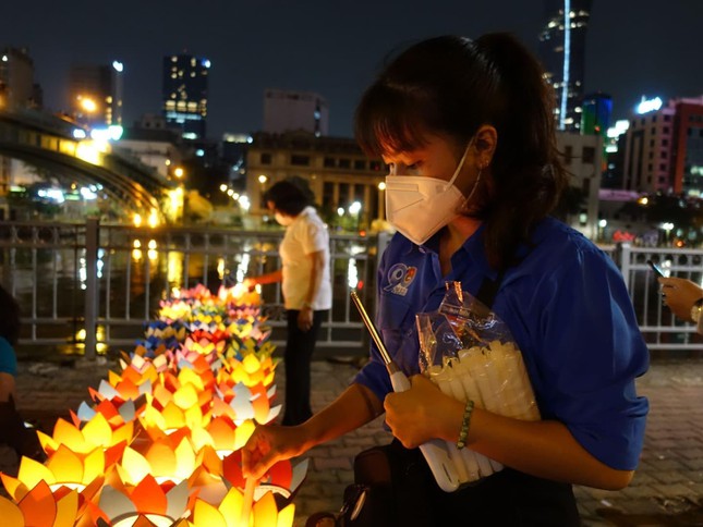 Trung tâm Nghệ thuật Phật giáo Diệu Tướng Am (TPHCM) tổ chức dâng hương, thả đèn hoa đăng để tưởng niệm người dân tử nạn vì COVID-19. Ảnh: Nguyễn Dũng