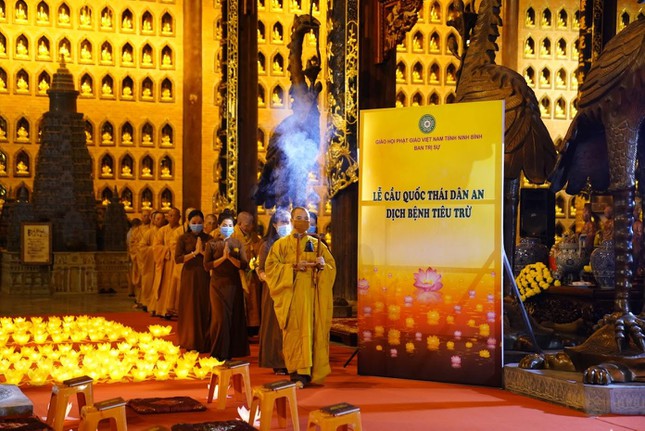 Hưởng ứng lời kêu gọi của UBTWMTTQVN và thực hiện công văn chỉ đạo của Hội đồng Trị sự GHPGVN về việc tổ chức Lễ cầu siêu – tưởng niệm đồng bào tử vong do dịch COVID-19, tại điện Tam Thế chùa Bái Đính, Ban Trị sự GHPGVN tỉnh Ninh Bình phối hợp với chùa Bái Đính long trọng tổ chức Lễ cầu siêu-tưởng niệm đồng bào tử vong do dịch COVID-19 và các nạn nhân tử vong do tai nạn giao thông.