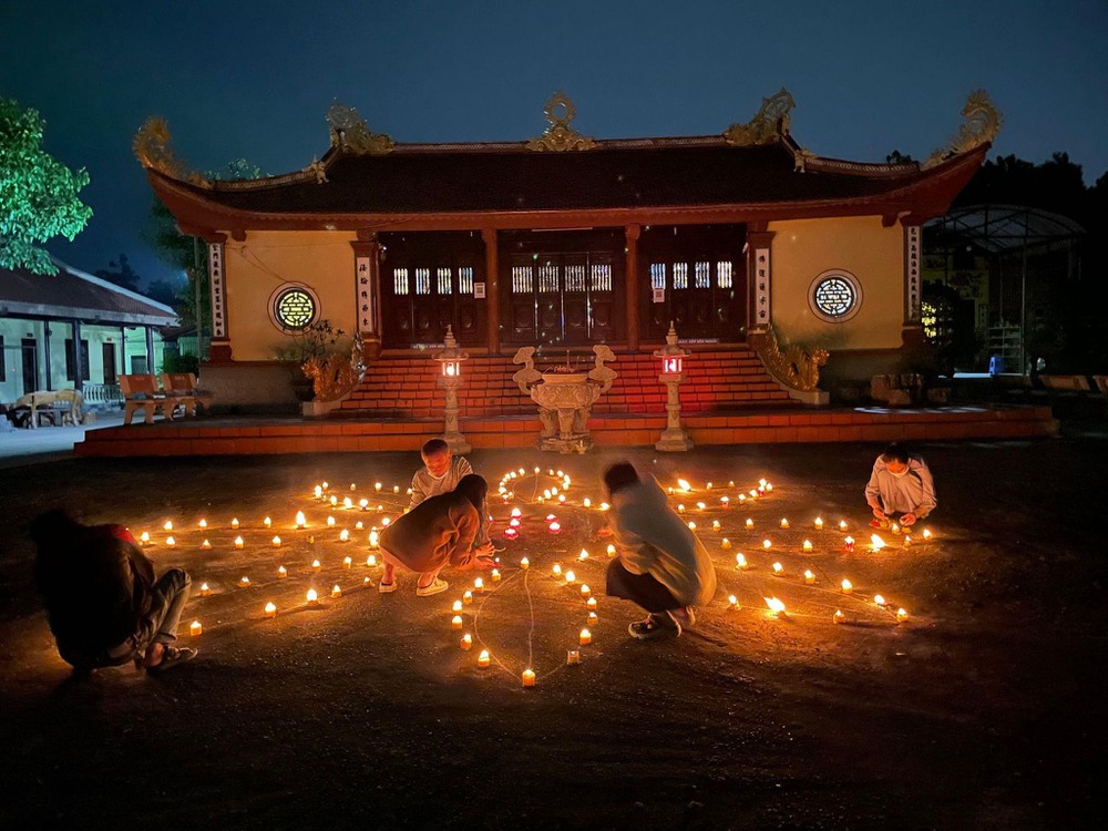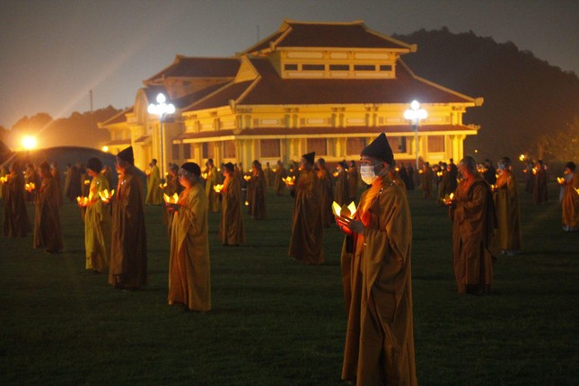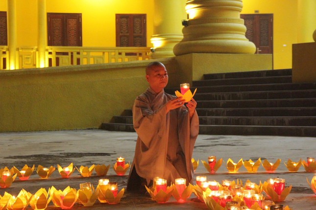 Hàng trăm tăng, ni sinh Học viện Phật giáo Việt Nam tại Hà Nội thắp hoa đăng tưởng niệm đồng bào, chiến sĩ mất do COVID-19.