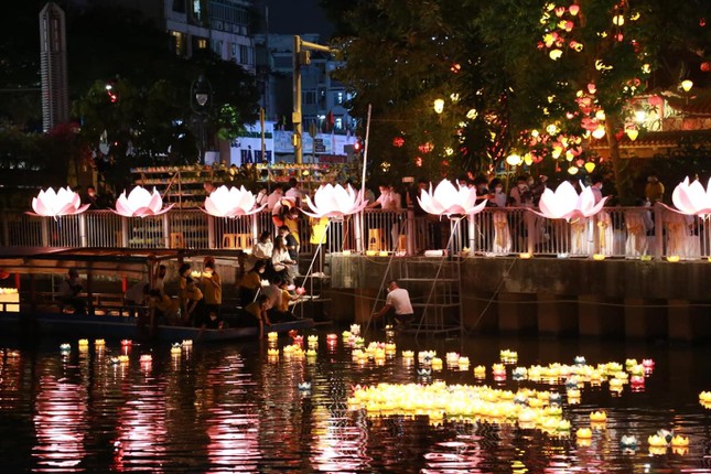 Tại kênh Tàu Hủ – Bến Nghé (đoạn gần cầu Mống, quận 4), công tác chuẩn bị cho hoạt động thả đèn hoa đăng đã sẵn sàng.