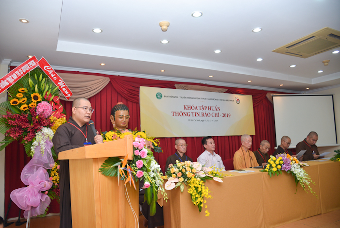 ĐĐ.Thích Tâm Hải, Trưởng ban TT-TT Phật giáo TP, Phó Tổng biên tập báo Giác Ngộ, Trưởng ban Tổ chức nhấn mạnh trong lời phát biểu khai mạc: “Thông tin, báo chí là lĩnh vực quan trọng của đời sống xã hội, trong tương quan duyên sinh, Phật giáo không thể không có sự hội nhập. Tuy nhiên, muốn có sự hội nhập thì chúng ta cần được trang bị kiến thức và trau dồi kỹ năng chuyên môn. Đó cũng là mục đích của khóa tập huấn thông tin, báo chí 2019 do Ban TT-TT Phật giáo TP phối hợp với Hội Nhà báo TP.HCM và Báo Giác Ngộ tổ chức”.